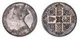 QUEEN VICTORIA - GEORGE V, Gothic florin 1873 (S.3893); jubilee coinage silver shilling 1887 (S.3926); bronze farthing 1913. First very good; rest very fine. (3)