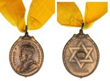 KENYA, George V, Chief's Medal, instituted 1926, in bronze, oval (68x50mm) (Jamieson 59), red-gold patina with yellow-moire neck cravat. Nearly uncirculated.