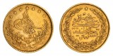 TURKEY, Abdul Aziz, 100 kurush AH 1277/7(KM.696). Good very fine.