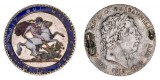 GREAT BRITAIN, enamelled coins, crowns 1818, 1821; shillings 1826(3); florin 1869; shillings 1826(3); florin 1869; groat 1856, threepence 1892. Mostly all brooch mounted, very fine ...