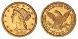 USA, FIVE DOLLARS OR HALF EAGLE, 1855S, Liberty head. Nearly extremely fine and scarce.