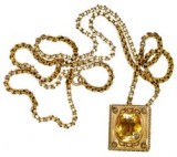 POISONER'S PENDANT, ornate yellow gold hinged pendant set with a large topaz on the base, and a diamond, ruby, sapphire, and amethyst on each side ...