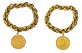 COIN BRACELET, USA twenty dollars or double eagle, 1924, St Gaudens, mounted in an 18k gold twisted snake bracelet, (gross wt 93.19 g). Very fine.