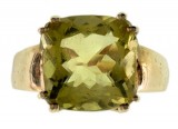 MATCHED JEWELLERY SET, 9ct yellow gold ring with large green semi-precious stone, 2 small white stones on each corner of arms (5.42g), square box pendant ...