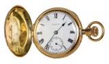 POCKETWATCH, Elgin pocketwatch in 14k yellow gold case, with ornate folial decoration, Martha inscribed on inside of case (30.04g). Very fine.