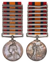 QUEEN'S SOUTH AFRICA MEDAL 1899, (type 2 reverse), - eight clasps - Cape Colony, Paardeberg, Driefontein, Johannesburg, Diamond Hill, Belfast, South Africa 1901, South Africa ...