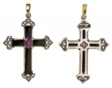 CRUCIFIX, 18ct white and yellow gold, set with black onyx on the face and a black fire opal in the centre (total weight 10.80g). Extremely ...