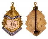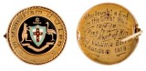AUSTRALIA MEMORIAL BADGE, in gold (9ct; 6.18g; 26mm), attributed to Willis & Sons, features enamelled Australian coat-of-arms on obverse and inscribed around this, "In Memoriam ...