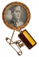 WWI SOLDIER PHOTO BROOCH, in 15ct gold frame and an example of a unit colour patch in 9ct gold frame (tot wt 7.84g; photo frame ...
