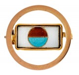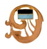 AIF COLOUR PATCH BROOCH, in gold (9ct; 4.33g; 29x10.5mm), by Wendts, features a glittering tan bar and in the centre is a black and white ...