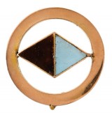 AIF, 27 INFANTRY BATTALION COLOUR PATCH BROOCH (APPEARS TO BE BROWN OVER BLUE) IN VOIDED ENAMEL AND GOLD (9CT; 3.56g; 22.5mm), by F.R&S (Flavelle, Roberts ...