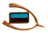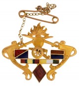 AIF, 11 INFANTRY BATTALION COLOUR PATCH LUCKY WISHBONE BROOCH IN ENAMEL AND GOLD (9CT; 2.33g; 36x20.5mm), attributed to Willis & Sons, pin-back. Small dent in ...