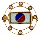 AIF, 4 DIVISION ARTILLERY COLOUR PATCH BROOCH IN FRAME ON WHITE BACKGROUND AND IN A VOIDED DOUBLE CIRCULAR FRAME DECORATED WITH EIGHT SEED PEARLS, all ...