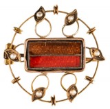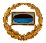 AIF, 42 INFANTRY BATTALION COLOUR PATCH BROOCH IN A FRAME AND THIS INSIDE A CLOSED WREATH FRAME IN GOLD (9CT; 2.76g; 27mm), no maker's mark, ...