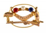 AIF BROOCH, c1919, in voided gold and enamel (15ct; 4.89g; 37x30.5mm), by FR&S (Flavelle, Roberts & Sankey), features artillery symbols and below in enamel on ...
