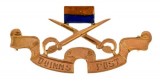 AIF, 15 INFANTRY BATTALION ENAMELLED COLOUR PATCH OVER CROSSED SWORDS ON A SCROLL INSCRIBED "QUINNS POST", in gold (9ct; 1.88g; 35.5x17mm), by F.R.&.S, pin-back. Good ...