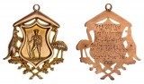 PRIZE FOB, in gold (9ct; 2.68g; 32x22mm), reverse inscribed, "Squad Drill/Rfl Exce/1918./Sgt/Anschau. J." Very fine. Ex Smalls Auction lot 374 1/12/2018. Could be either father ...