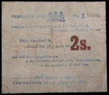 SOUTH AFRICA, Anglo-Boer War, Siege of Mafeking, two shillings, authority authorization by Colonel R.S.S. Baden-Powell, No. B 9481, issued February, 1900 (P.S652). Small corner repair, ...