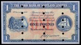 UNION BANK OF SCOTLAND LTD., one pound, 1st June 1954, H/16 390673 (P.816b); another, a specimen, no serial number, 8th December 1952, punch hole cancelled ...
