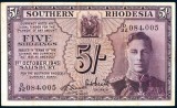 SOUTHERN RHODESIA, Southern Rhodesia Currency Board, George VI, five shillings, 1st October 1945, Salisbury, D/32 084,005 (P.8a). Good fine.