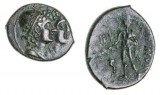 ITALY, Bruttium, Rhegion, Second Punic War, (c.211-201 B.C.), AE trias (2.61 g), obv. Jugate busts of Asklepios and Hygeia to right, rev. Hermes standing left, ...
