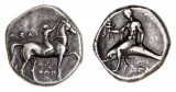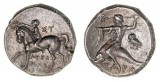 ITALY, Calabria, Tarentum (Taras), silver nomos, (c.280 B.C.), (7.86 g), obv. naked horseman on horseback prancing to left, holding small shield behind him, to right ...