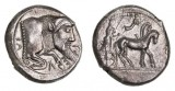SICILY, Gela, (c.490/85-480/75 B.C.), silver didrachm, (8.62 g), obv. naked horseman to right wearing crested helmet, galloping right brandishing spear held high in his hand, ...