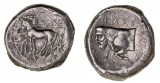 SICILY, Gela, (465-450 B.C.), silver litra, (0.65 g, 12mm), obv. horse standing to right, rein trailing from mouth, wreath above, dotted border, rev. forepart of ...