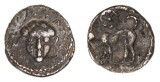 SICILY, Segesta, (c.430-420 B.C.), silver litra (0.65 g), Hurter Group II, obv. facing head of the nymph Segesta, around **SEGESTAZIB*, rev. Hound standing left; wheel ...