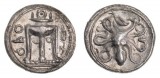 ITALY, Bruttium, Kroton, (c.425-350 B.C.), silver triobol, 12mm, (1.15 g), obv. QPO to left upwards, tripod with a grain ear to right, rev. Octopus, (S.-, ...