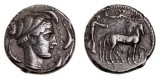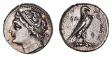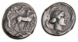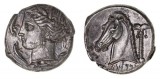 SICULO-PUNIC, mint of the camp, (c.320-310 B.C.), silver tetradrachm, (17.16 g), obv. wreathed head of Persephone to left, wearing triple pendant earring and necklace, four ...
