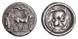 SICILY, Syracuse, Deinomenid Tyranny, (c.485-466 B.C.), silver tetradrachm, (18.35 g), struck under Gelon, c.478-475 B.C., obv. quadriga driven to right by bearded male charioteer, Nike ...