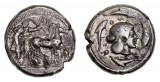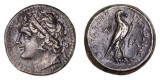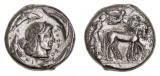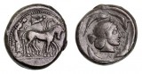SICILY, Syracuse, Kingdom of, Agathokles, (317-289 B.C.), silver tetradrachm, (16.45 g), obv. head of Artemis-Arethusa to left, surrounded by three dolphins, with dotted border, trace ...