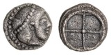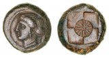 SICILY, Syracuse, (485-479 B.C.), silver obol, (0.60 g), obv. Artemis-Arethusa head to right, diadem of beads, hair turned back, dotted border, rev. wheel of four ...