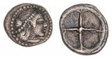 SICILY, Syracuse, Hieron I, (478-466 B.C.), silver obol, (8.5mm, 0.65 g), struck c.475-470 B.C., obv. diademed head of Arethousa right, rev. wheel with four spokes, ...