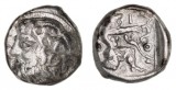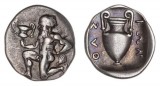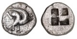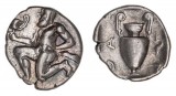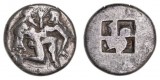 THRACE, Island off, Thasos, (c.early 5th century B.C.), silver stater, (8.09 g), obv. naked ithyphallic satyr (classical style) in kneeling running attitude carrying off nymph ...