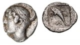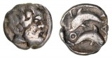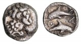 THRACE, Islands off Thrace, Thasos, (c.412-404 B.C.), silver hemiobol (0.23 g), obv. diademed head of nymph to left, rev. dolphin left within shallow incuse, around ...