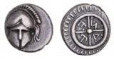 THRACE, Mesembria, (450-350 B.C.), silver diobol (1.29 g), obv. crested helmet facing, rev. **META* in four quarters of a radiate wheel, (S.1673, SNG BMC 268-271, ...