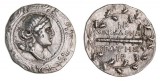 MACEDON, Amphipolis, (158-149 B.C.), silver tetradrachm, (17.02 g), obv. Macedonian shield, at centre of which is a bust of Artemis Tauropolos to right with bow ...