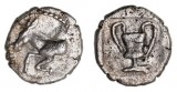 MACEDON, Mende, (c.460-423 B.C.), silver trihemitartemorion?, (7.5mm, 0.43 g), obv. forepart of ass left, rev. kantharos within shallow incuse square, (cf.S.1281, HGC 3, 567, SNG ...