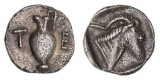 MACEDON, Terone, (c.400-348 B.C.), silver tritartemorion (8mm, 0.40 g, 1h), obv. oinochoe, T E flanking, rev. head of goat right within incuse square, (S.1459, Hardwick ...