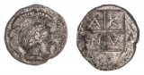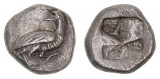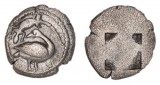 MACEDON, Eion, (c.460-400 B.C.), silver trihemiobol, (11mm, 0.76 g), obv. Goose standing right, head left, above, lizard curving left, H to lower right, rev. quadripartite ...