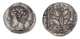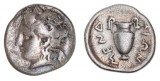 MACEDON, Mende, (late 5th century B.C.), silver tetrobol, (13mm, 2.00 g, 12h), obv. wreathed head of young Dionysos left, rev. kantharos, MEN**D* AI**W*N around, (S.-, ...