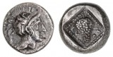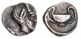 WESTERN ASIA MINOR, uncertain mint, (4th century B.C.), silver hemiobol, (6mm, 0.24 g, 2h) , obv. head of satyr (Pan?) right, rev. kylix in incuse ...