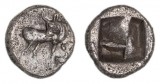 ASIA MINOR, uncertain mint, (5th century B.C.), silver obol(?), (8mm, 0.63 g), obv. Bull standing right, head reverted, rev. quadripartite incuse square, (S.-, cf.AMNG III/2, ...