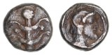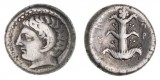 KYRENAIKA, Barke, silver hemidrachm, (435-331 B.C.), (1.51 g), Asiatic standard, obv. Silphium plant, rev. head of Apollo Karneios, BAR behind neck, all within linear circle, ...