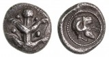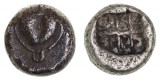 KYRENAICA, Kyrene, (c.510-490 B.C.), silver tetrobol, (2.38 g Asiatic standard), Period I 1A, obv. Silphium fruit, rev. incuse square with irregular lines, (cf.S.-, SNG Cop.-, ...