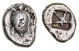 ATTICA, Aegina, (490-480 B.C.), silver stater, (12.22 g), obv. smoothed shell sea turtle with trace of dots down dorsal spine, Countermarked with scallop shell, rev. ...