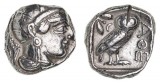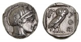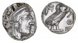 ATTICA, Athens, (late 5th century B.C.) silver drachm, (3.69 g), obv. Athena in Attic helmet right, rev. owl standing right, head facing, olive spray to ...