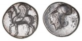 AKARNANIA, Leukas, (c.320-280 B.C.), silver stater, (8.55 g), obv. pegasus flying left, **L* below, rev. head of Athena to left, wearing Corinthian helmet over a ...
